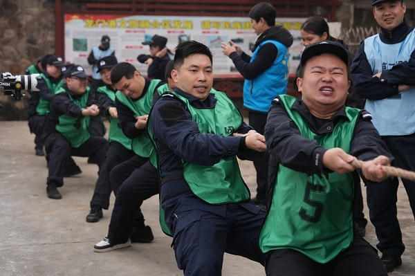 在综合体能比武项目中,参赛队员们团结协作,全力投入到接力搬运、上“青云梯”攀顶、顶峰集体拼图等项目的比拼中,展开了一场竞技盛宴。 “一二、一二” ,拔河比赛中,随着此起彼伏的节奏声,对战双方铆足干劲、倾力奋战,每一次双拳握紧都是信念的传递,每一次共同发力都是团结的见证。赛场两边呐喊声、助威声此起彼伏,将大比武氛围推向高点。