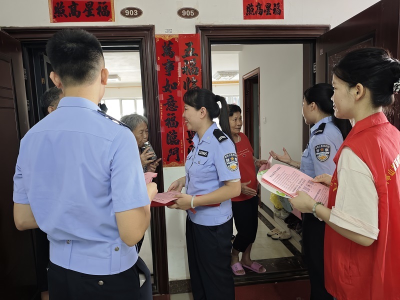 宣传队伍在阳光家园人流密集的街面设立咨询点、悬挂横幅、发放图文并茂的宣传册,民辅警结合近期高发诈骗类型,以案说法,向过往居民生动揭露“刷单返利”“冒充公检法”“养老投资”等诈骗套路,传授识别技巧与防范要领,现场互动答疑,气氛热烈。针对易受骗群体,宣传人员分组深入居民家中,特别是面向老年住户,进行“一对一”精准宣传。耐心讲解诈骗分子常用话术,手把手指导下载安装“国家反诈中心APP”,提醒居民“不轻信、不转账、不透露”,牢牢守住“钱袋子”。