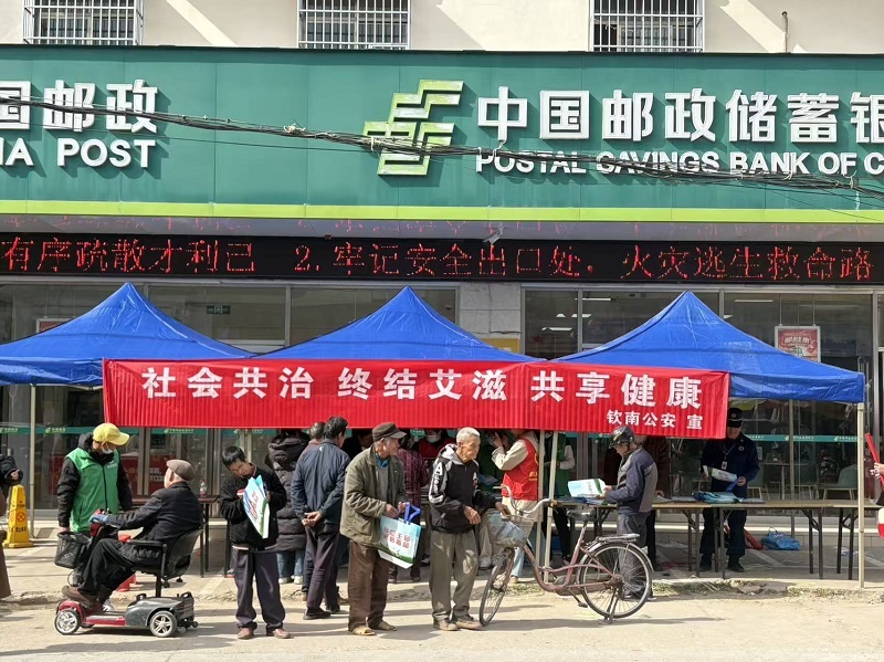 12月1日是第38个“世界艾滋病日”,为全面提升辖区居民安全防范意识,11月28日,那彭派出所组织民辅警开展“社会共治、终结艾滋、共享健康”主题宣传活动,将艾滋病防治知识与禁毒宣传有机结合,筑牢辖区安全“双防线”。