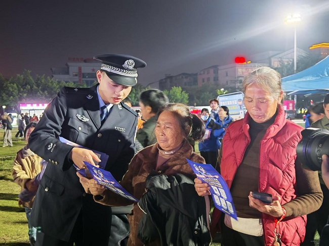 活动充分利用“晚会舞台与现场空间”进行立体宣传。晚会前,现场大屏幕循环播放《孤注一掷》等反诈短片,营造浓厚氛围。晚会中,反诈主题小品《网恋迷局》生动演绎了“网恋+虚假投资+寄送现金”的新型复合诈骗手法,以通俗易懂的方式揭露骗局。此外,广场草坪设有专门宣传点,工作人员通过发放资料、讲解案例、开展有奖问答等方式与群众积极互动,以群众喜闻乐见的方式提升宣传感染力,有效增强了群众识骗防骗能力,进一步筑牢了全民反诈防线。