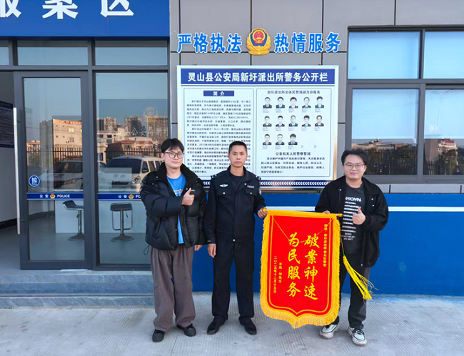 店主对派出所高效负责的工作态度和切实维护群众利益的做法深表感谢。为表达诚挚的谢意,近日,店主特意将一面印有"破案神速 为民服务"字样的锦旗送到了新圩派出所。