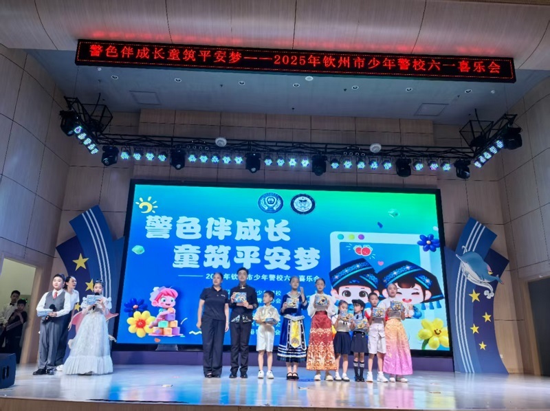 5 月 30 日,在六一国际儿童节即将来临之际,钦州市少年警校精心举办了一场主题为 “警色伴成长 童筑平安梦” 的六一喜乐会演出,为孩子们打造了一场既欢乐又富有教育意义的节日盛宴。此次活动汇聚了来自钦州市少年警校、钦州市警察协会警娃俱乐部和共建单位的孩子们,他们用精彩的表演展现了童真与活力,为即将到来的 “六一” 儿童节提前奏响了欢乐的序曲。